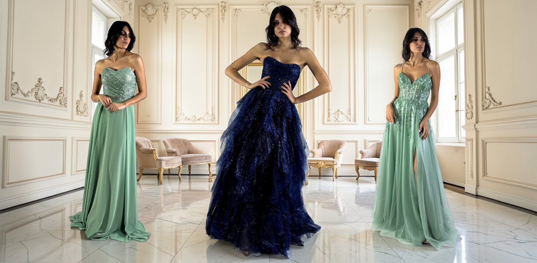 Nella nostra collezione troverai abiti esclusivi, ricchi di dettagli raffinati e pensati per valorizzare la tua personalità. Che tu desideri un look romantico, sofisticato o dal carattere più deciso, le nostre consulenti sapranno guidarti verso la scelta che ti farà sentire protagonista assoluta della tua serata.
