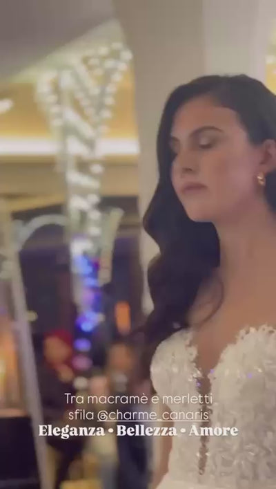 Una passerella che racconta materiali iconici come macramè, mikado, sete fluenti, tulle impalpabili e organza luminosa. Abiti che valorizzano ogni silhouette, senza compromessi.