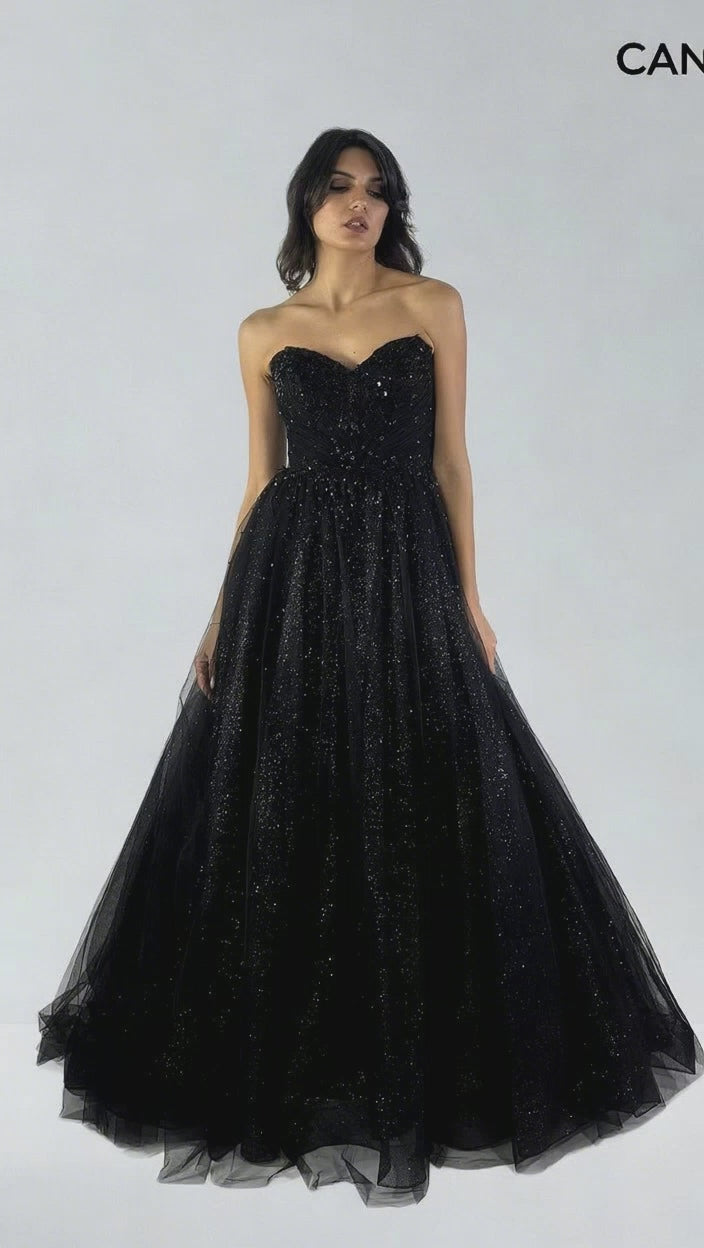 Abito con gonna ampia in tulle dal fascino romantico e scenografico. Il corpetto con scollo a cuore, finemente drappeggiato, è interamente lavorato con microperline e paillettes, creando un gioco di luce delicato e prezioso. La gonna ampia, costruita con più strati di tulle e tulle brillè, dona volume e un effetto etereo a ogni movimento. Sul retro, la schiena si chiude con un elegante intreccio di lacci, che aggiunge un dettaglio raffinato e regolabile. Un abito da sogno, perfetto per un look fiabesco e luminoso.