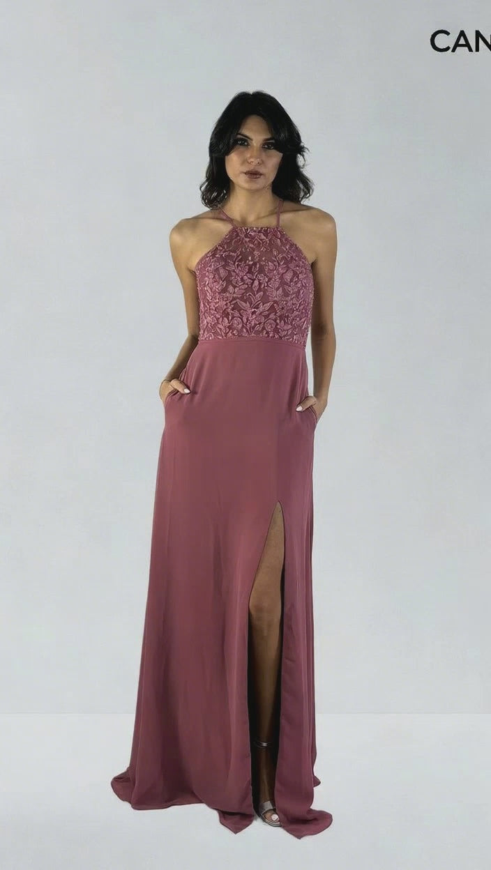 Abito con gonna dritta in georgette, leggera e fluida, arricchita da un spacco laterale che dona movimento e slancia la figura. Le tasche aggiungono un tocco moderno e funzionale senza rinunciare alla raffinatezza del modello. Il corpetto con scollo allamericana è il vero protagonista: interamente ricamato in pizzo e micropaillettes, crea un effetto luminoso e delicato, esaltando il décolleté e le spalle con eleganza. Un abito sofisticato e contemporaneo, perfetto per chi cerca un equilibrio tra stile e comfort.